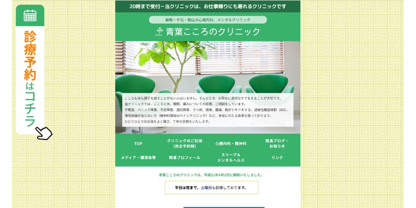精神科・心療内科の診察は予約制となっており、受診を検討している方は公式HPを参照してください。